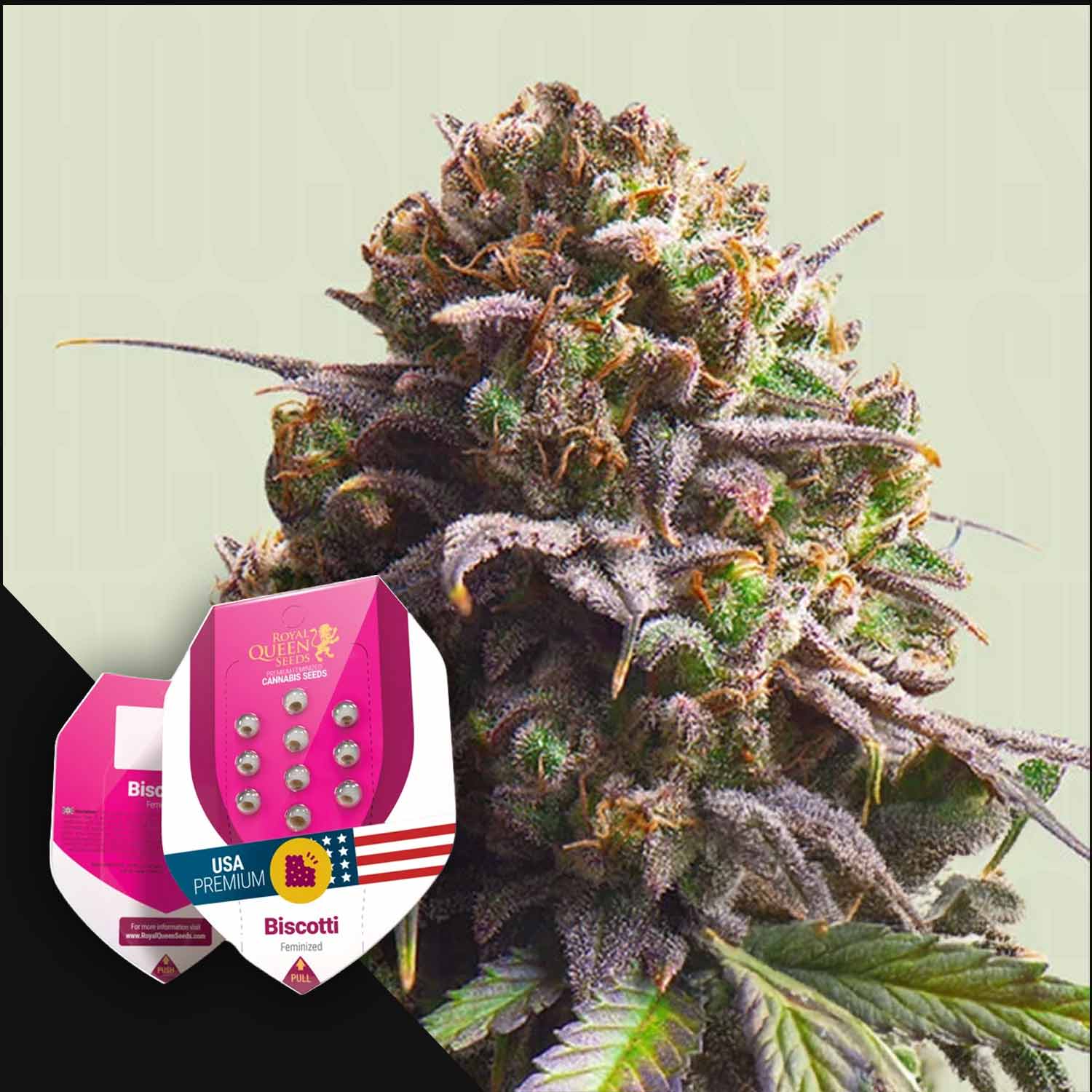 Biscotti is a masterful creation by Royal Queen Seeds that combines the creamy, sweet flavors of Gelato 25 with the earthy, relaxing effects of South Florida OG. The result is an indica-dominant strain that impresses not only with its complex terpene profile but also with its potent effects. Perfect for connoisseurs who value a balanced experience—both sensory and in effect. The plant stands out with its compact growth form and its ability to deliver high yields even in smaller growing spaces. The buds are dense, resinous, and develop a fascinating color palette from green to purple during the maturation phase. Thanks to its robust genetics, Biscotti is relatively easy to care for but requires good ventilation due to its high resin content to prevent mold.